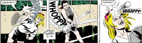 When I go through the comics (after slaughtering the crossword puzzle), I first stop by my favorites. Garfield? No. FoxTrot? No. Calvin and Hobbes? No. Try JUDGE PARKER. It's so gripping--GRIPPING, I say! The action, adventure, and romance that go on in those THREE frames leave me speechless. Utterly SPEECHLESS. Never read Judge Parker? Here's something to whet your appetite: